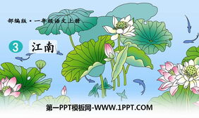 水墨荷花鲤鱼背景的《一纸江南》PPT模板