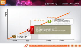 蓝色与橙色搭配的年代历程图幻灯片图表