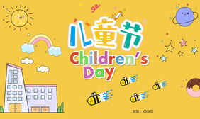 彩色可爱卡通小朋友背景六一儿童节PPT模板