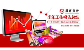 蓝色简洁微立体建设银行工作总结汇报PPT模板