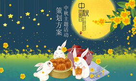 可爱卡通玉兔吃月饼背景的中秋节活动策划PPT模板