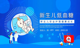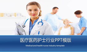 蓝色扁平化医生背景的医疗医院PPT模板免费下载